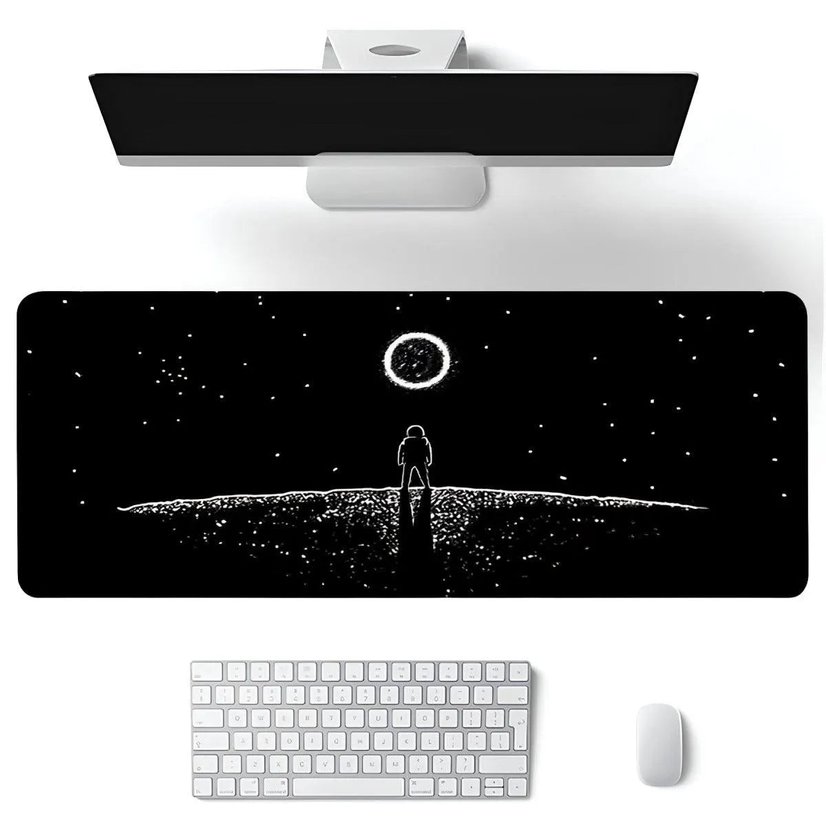 Améliorez votre setup de jeu ou de travail avec le tapis de souris XXL bureau, un accessoire idéal pour les passionnés de gaming ou d'univers fantastiques. Son design unique représente un astronaute explorant l'espace, laissant apparaitre la galaxie étoilée, le tout dans un fond noir. Conçu spécialement pour enrichir votre expérience de jeu, ce grand tapis de souris combine confort, style et fonctionnalité.