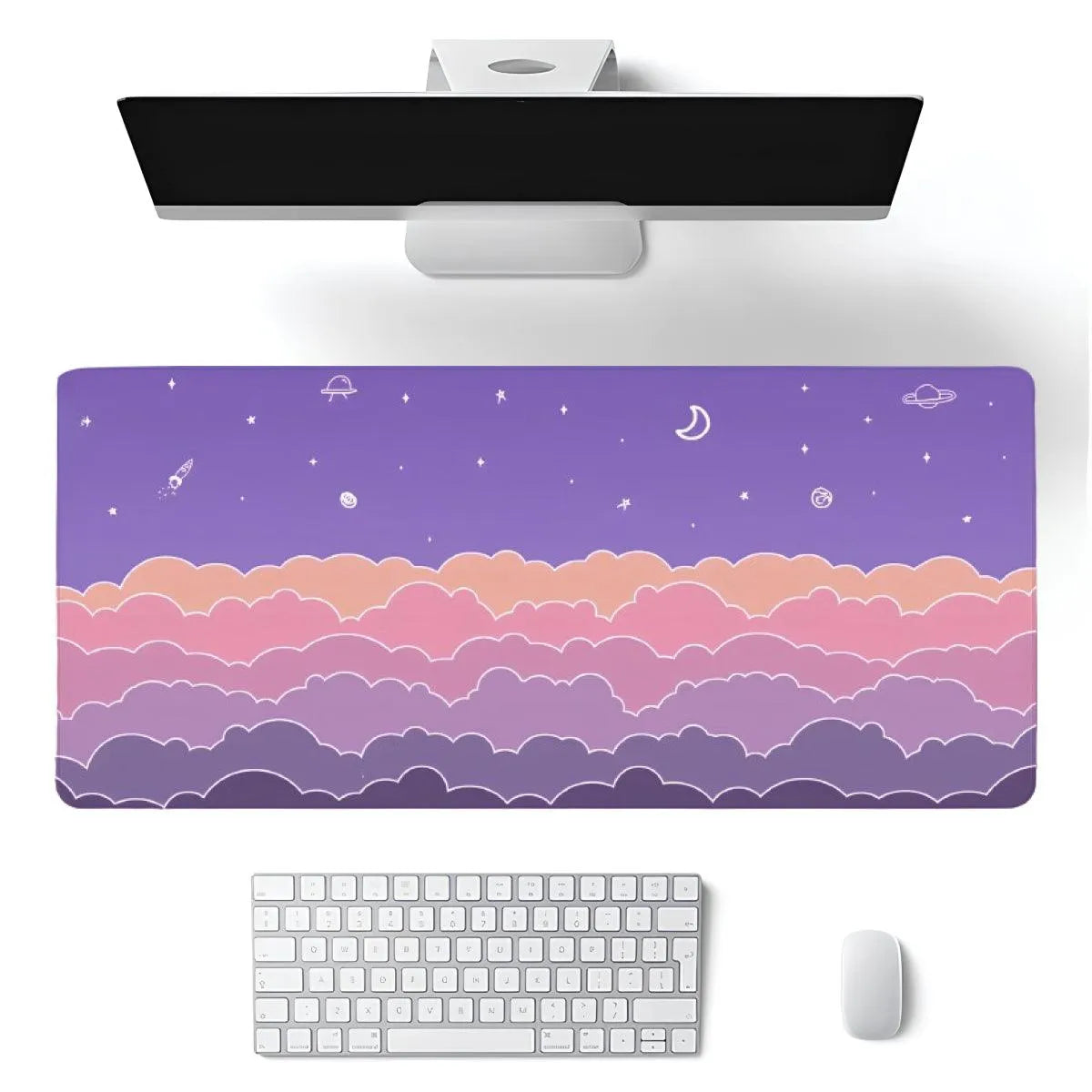 Découvrez le tapis de souris XXL avec des nuages rose et violet en style anime