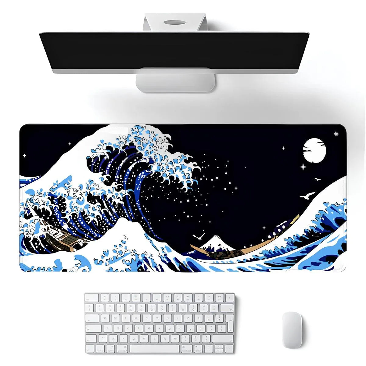 Un grand tapis de souris XXL ergonomique au design unique de vagues dans le style Japonais