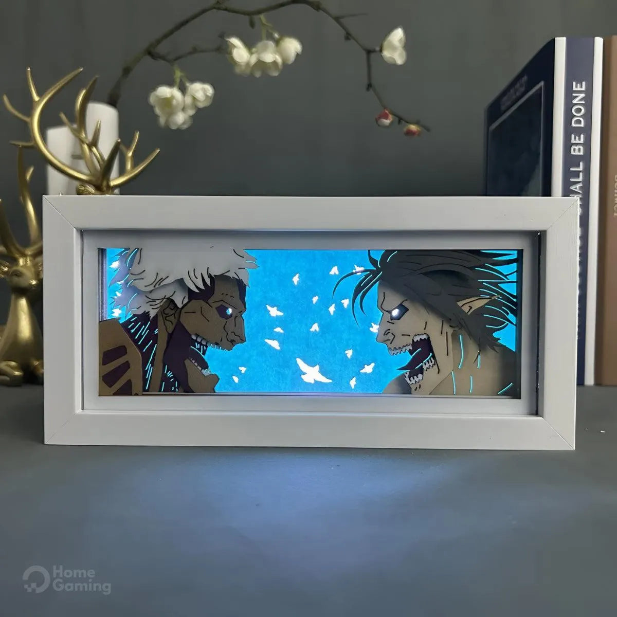 Une boite lumineuse représentant le combat mythique de Eren dans l'Attaque des Titans pour illuminer votre chambre