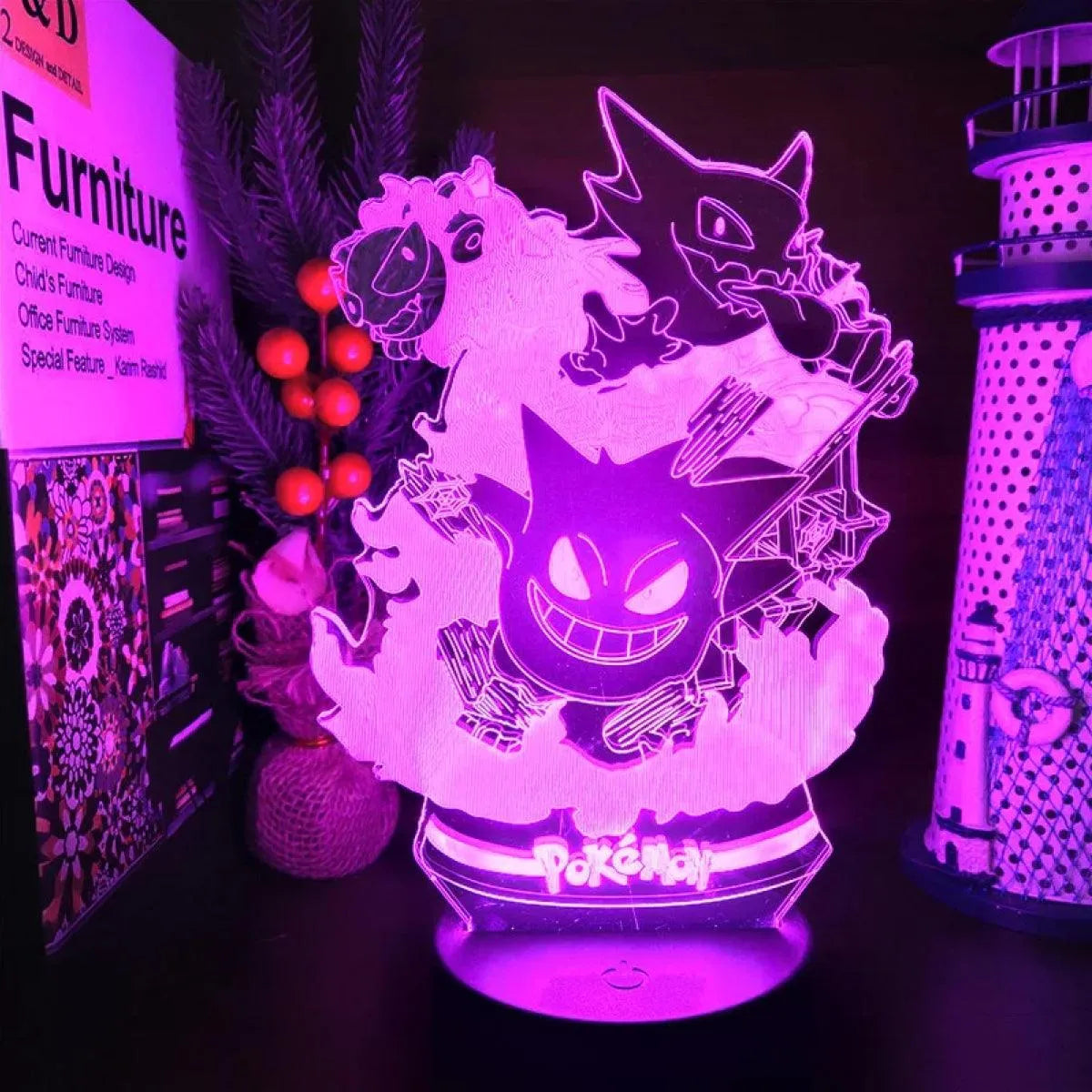 Découvrez la lampe LED 3D représentant Ectoplasma, Spectrum et Fantominus. Une veilleuse idéale pour les fans de Pokémon